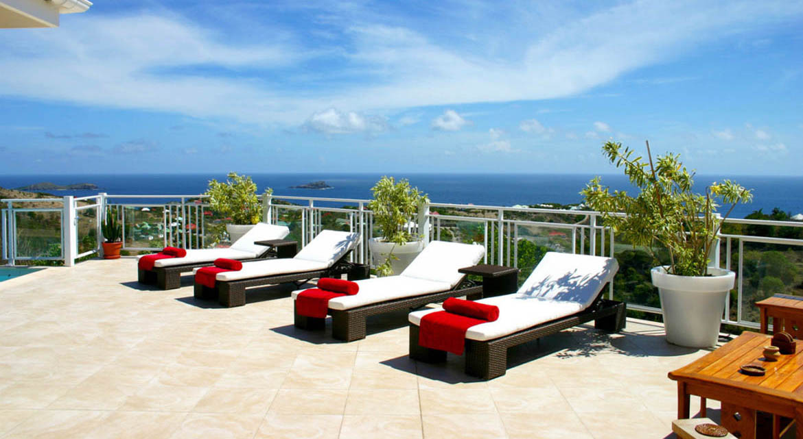 Au Coeur du Rocher is a beautiful 3 bedroom, 3 and ½ bathroom St Barts villa rental on Vitet hillside, overlooking Marigot and the ocean with the islands of Frégate, Toc Vers, Bonhomme and in the distance St Marteen and Anguilla.