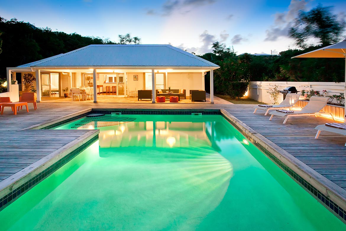 The swimming pool overlooks the view of the ocean, Nettle Bay, Marigot and the green hills of St Martin. Ixora is the perfect villa for a family vacation in Saint Martin!